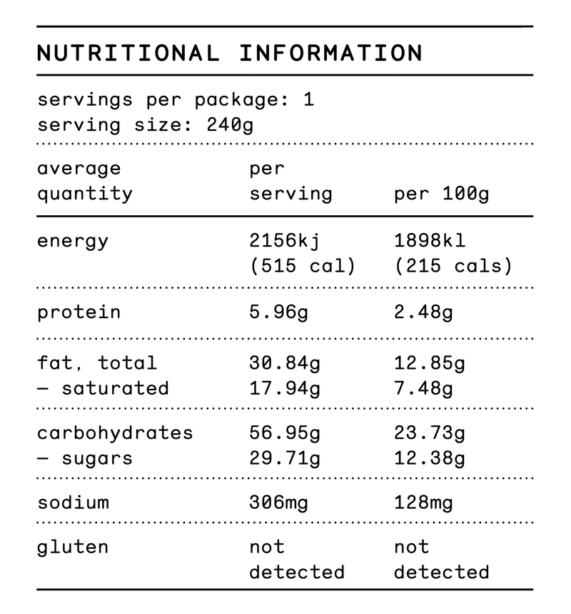 pre-order for seamless in-store pick up at any of our Brisbane locations - both cafes and pop-ups. we require a minimum of 24 hours notice on any pre-order cancellations and 72 hours notice on any celebration or custom cake orders. due to the nature of our food products, we sadly do not offer returns. learn more on our cancellation, collection and returns policy HERE.